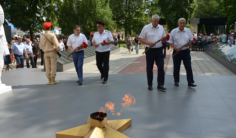 В городском парке Новокубанска, у мемориала «Вечный огонь», состоялось торжественное мероприятие «За Россию павшим….», посвященное Дню памяти и скорби. 81 год назад в этот день началась Великая Отечественная война. Много бед и страданий принесла она нашему народу, унеся миллионы жизней.