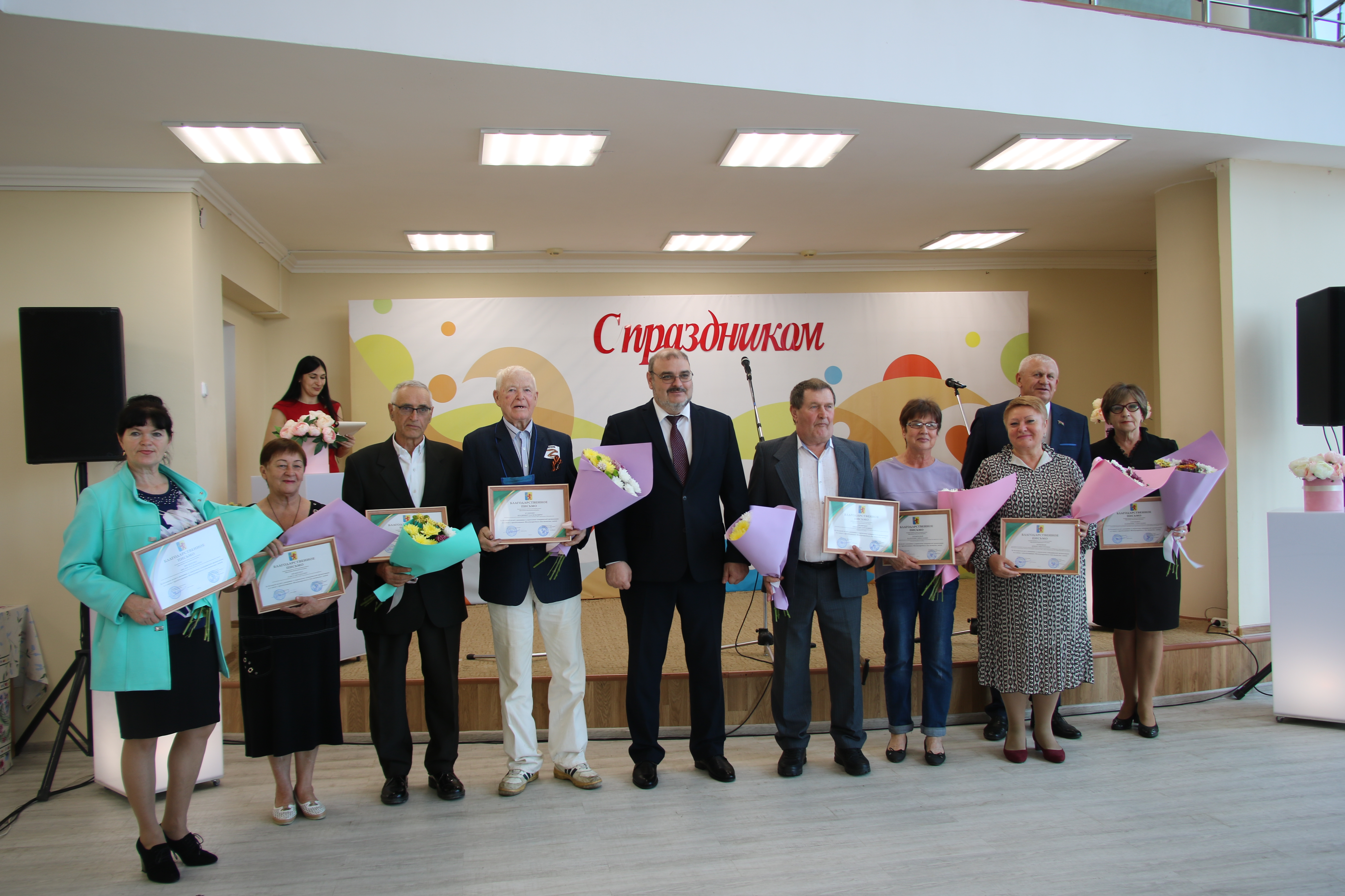 В завершение программы Александр Гомодин и Евгений Шутов вручили активистам благодарственные письма администрации и Совета Новокубанского района за большой вклад в развитие и укрепление ветеранской организации и в связи с празднованием Международного Дня пожилых людей.