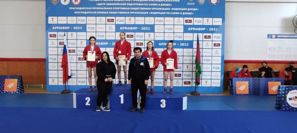 С 16 по 18 февраля в городе Армавире проходило первенство Краснодарского края по самбо среди юношей и девушек 2006-2008 годов рождения. Более 400 самбистов и самбисток из 15 муниципалитетов Краснодарского края оспаривали право быть лучшими самбистами края и путевку на первенство Южного федерального округа. Среди участников были и учащиеся отделения борьбы МАУ ДО ДЮСШ «Олимп» им. М.В.Канищева г.Новокубанска. Традиционно наши спортсмены не уезжают без медалей с первенств края по самбо. Так и на этом первенстве самбисткам Новокубанского района удалось завоевать две медали: золотую и серебряную. В весовой категории до 65 кг у девушек все свои схватки выиграла Дзадзиева Елизавета (тренер-преподаватель Мамедов Хатаии Илгарович) и стала победительницей соревнований. Второе место, проиграв в финале весовой категории до 50 кг, заняла Кульченко Элина (тренер-преподаватель Мамедов Хатаии Илгарович).